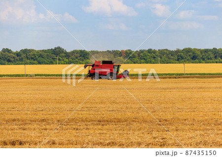 Combine harvester working on a wheat field. Harvesting the wheat. Agriculture concept