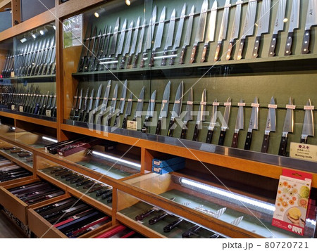 合羽橋の刃物店に陳列された包丁