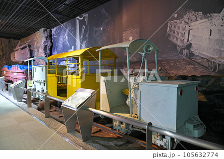 柵原ふれあい鉱山公園の展示車両を、やや下前方から撮影