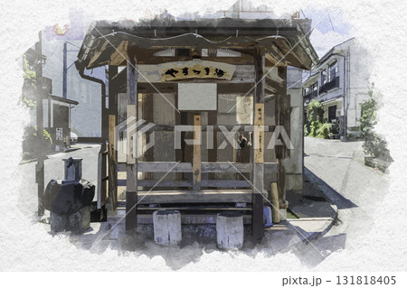 水彩画風 吉岡温泉 株湯 鳥取県鳥取市