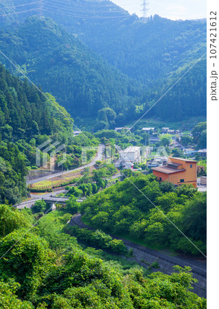 吉田元気村からの眺め 吉田川 街並み 真夏の風景 秩父市上吉田