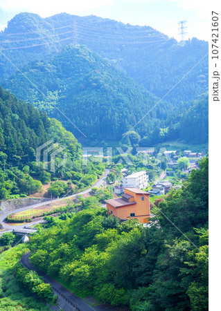 吉田元気村からの眺め 集落 真夏の風景 秩父市上吉田