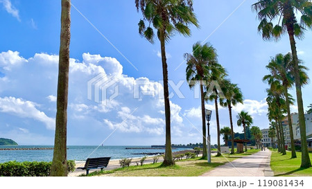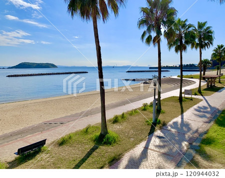 三河湾越しに渥美半島を望むヤシ並木のプロムナード〈吉良ワイキキビーチ(宮崎海水浴場)/愛知県西尾市〉