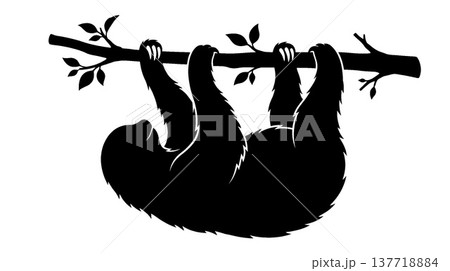 枝にぶら下がるナマケモノのシルエット