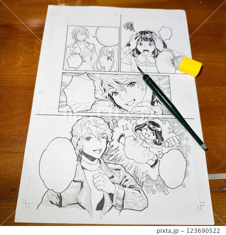 ゆるめシンプルな書き途中の漫画原稿 アナログ風