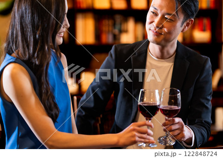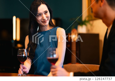 飲食店でワインを楽しむカップル
