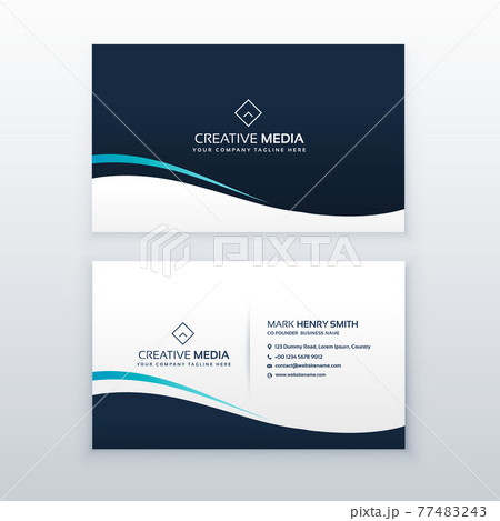 clean blue business card with wave shape
