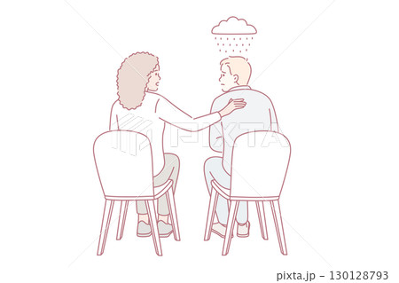 Cartoon Color Characters People Comforting Each Other Concept Flat Design Style. Vector illustration of Girl Comforts Guy
