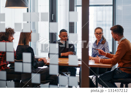 Business meeting of colleagues team for professional discussion, planning strategy in office