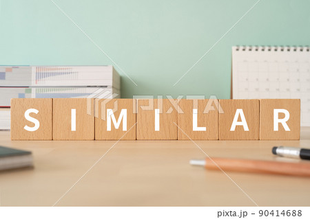 類似のイメージ|「SIMILAR」と書かれた積み木が置かれたデスク