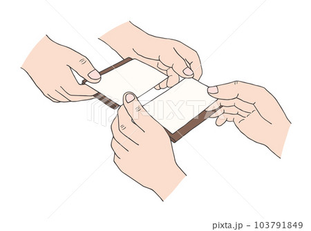 名刺交換をしているところ 手描きイラスト1