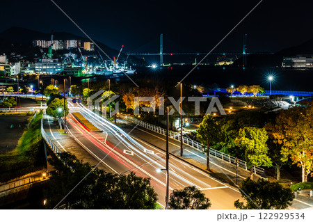 長崎県庁駐車場屋上庭園からの長崎駅周辺の夜景 パノラマ【長崎市】