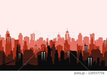 Colorful Flat Vector Illustration of New York City Skyline with NYC Famous Landmarks. Big Apple