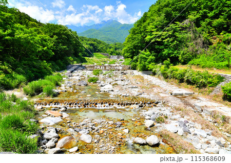 尾白橋/尾白川より上流/尾白川下流砂防堰堤方向を望む(山梨県北杜市)【2024.6】