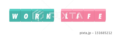 WORKとLIFEの英語の文字と黒いブロック - ワークライフバランスや仕事と生活のイラスト素材
