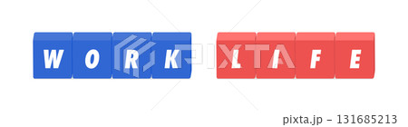 WORKとLIFEの英語の文字と青と赤のブロック - ワークライフバランスや仕事と生活のイメージ素材