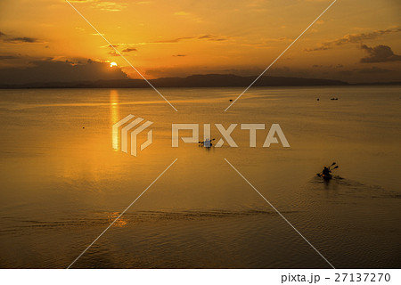 石垣島の名蔵湾より沈む夕陽とカヌー