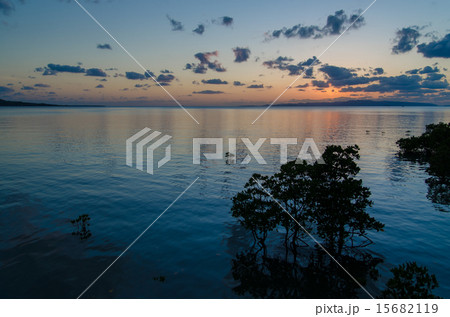 石垣島(沖縄)夕焼けと一般マングローブ(ブルーコーデ)