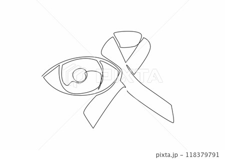 Continuous one line drawing the campaign ribbon next to eye. Invitation to care more about eye health. Prevention is better than cure. World Glaucoma Day. Single line draw design vector illustration