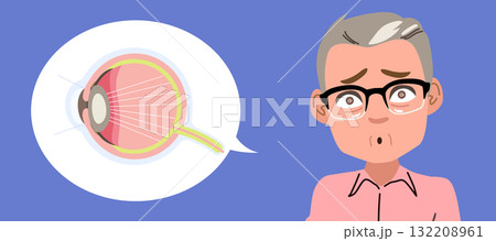 Cartoon Illustration Of Senior Man With Cataracts On Blue Background