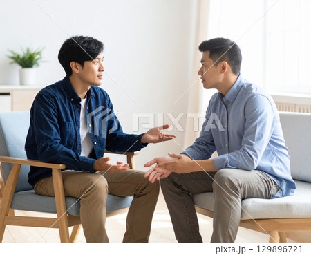夫婦で対話をし、気持ちを確認し合うイラスト 心理学・パートナーシップ