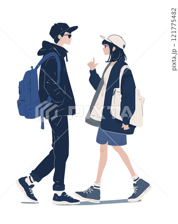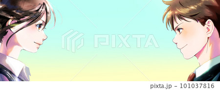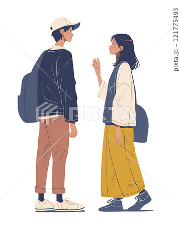 向かい合う横顔の学生カラーイラスト 背景なし