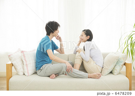 ソファでくつろぐ若いカップル