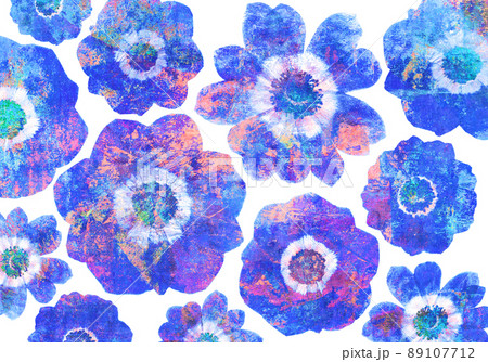 ブルーなアネモネ花アート、カラフルな手書き風イラスト