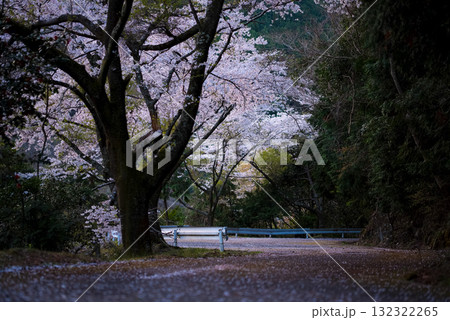 君ヶ野ダムのサクラと車の光跡