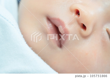 吸いだこの皮が剥けた新生児の唇