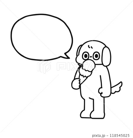 アイスクリームを食べるゆかいな犬と吹き出し 線画