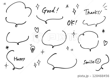 手書きの吹き出しセット。シンプル ゆるい かわいい