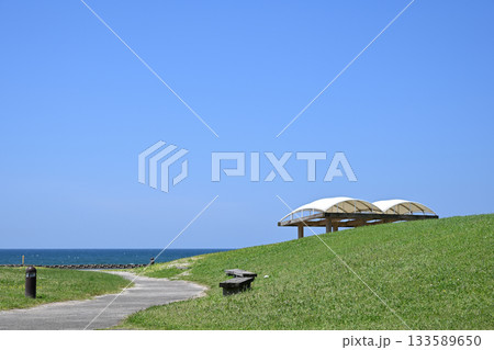 晴れの日の江口浜海浜公園の風景