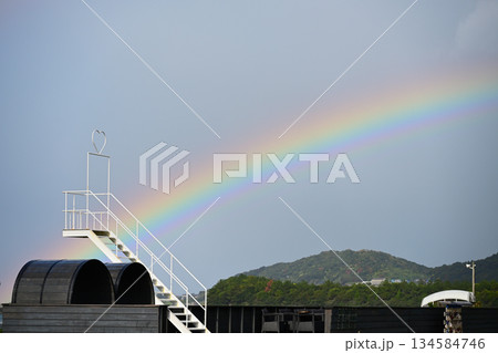 観光地を七色に染める虹の自然風景