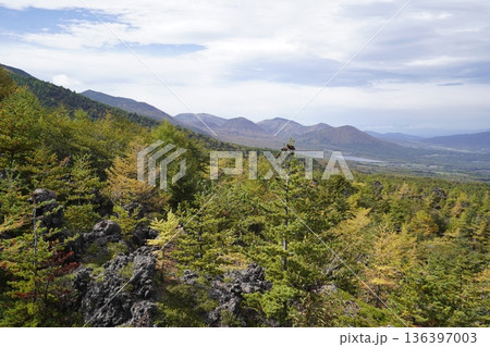 群馬県 浅間山 スカイロックトレイルの高台から鬼の押出し溶岩を見る 2025年10月18日