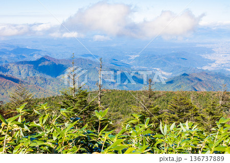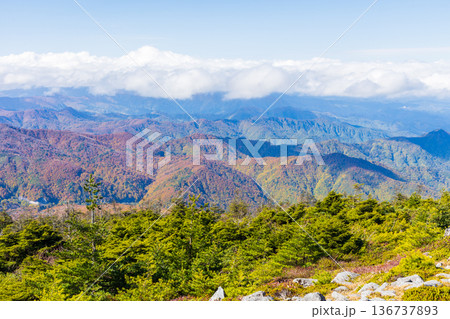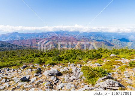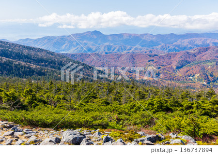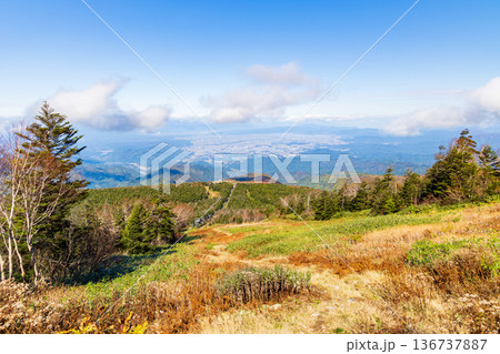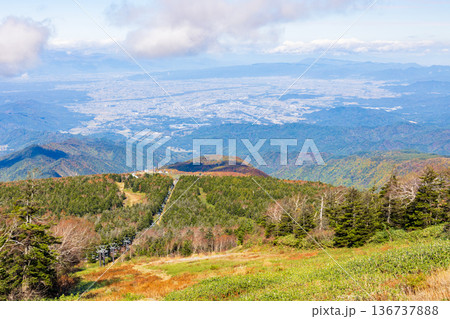 秋の山形県米沢市 紅葉の天元台高原 北望台からの眺望