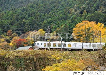 西武秩父線「山間部の紅葉風景を走る特急ラビュー」