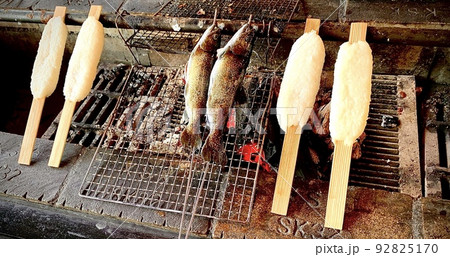 五平餅とヤマメの囲炉裏焼き