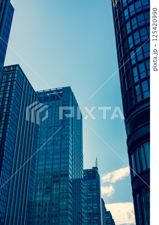 東京駅周辺の高層ビル群 呉服橋交差点 2025.04 c-3 暖色寒色強調