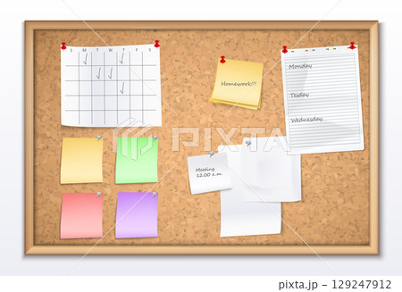 Office cork bulletin board template with sheet of paper