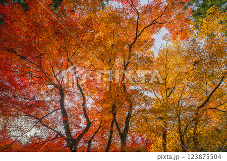 森町にある紅葉に包まれた大洞院の風景(静岡県)