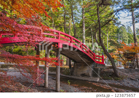 森町にある大洞院の紅葉の中にある赤い橋の風景(静岡県)