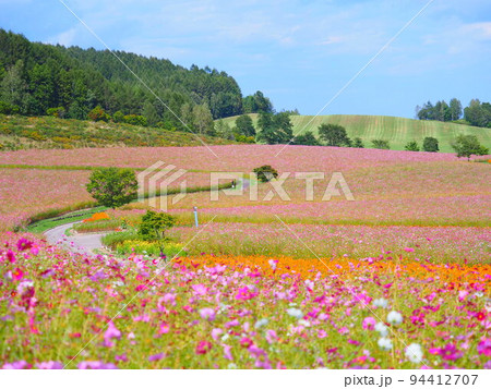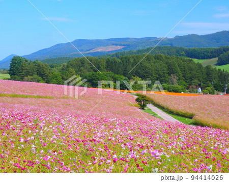 北海道の絶景 太陽の丘えんがる公園のコスモスと青空
