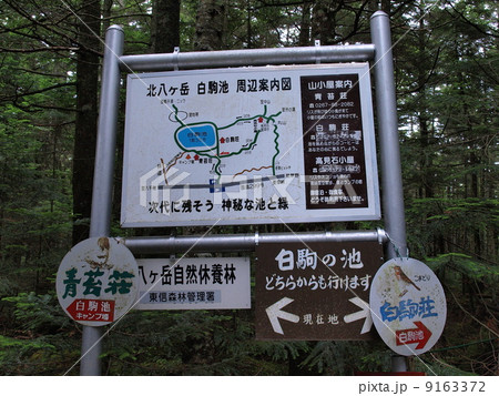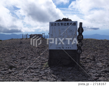 冬の長野県 蓼科山の山頂付近にある蓼科山頂周辺案内図