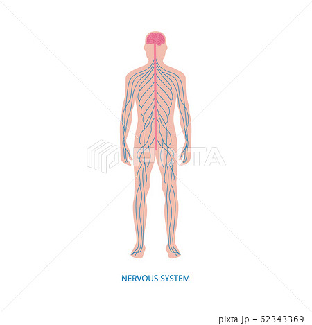 Nervous system - cartoon diagram of male human body with blue nerve lines
