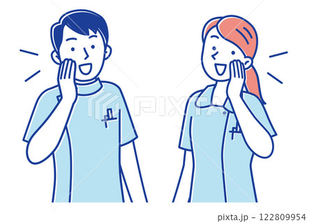 大きな声で誰かに呼びかける笑顔の若い看護師のイラスト