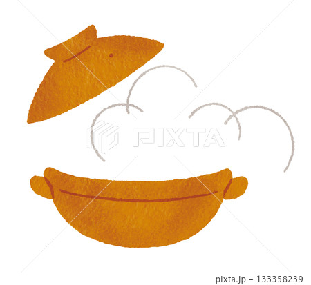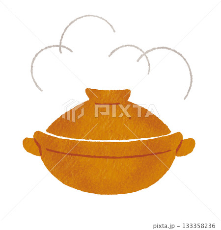 湯気の出る茶色い土鍋のイラスト(鍋料理・和食・冬の料理)