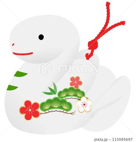 2025年 巳年 年賀状素材 へびの正月飾りの和風イラスト【招福】