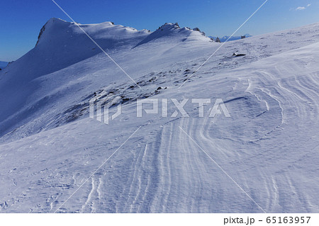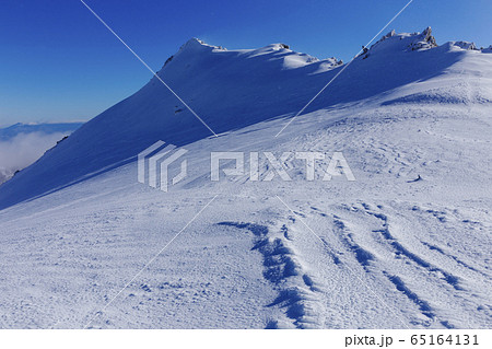 冬の長野県駒ヶ根市 駒ヶ岳の乗越浄土への登山中に千畳敷カール方面を見る