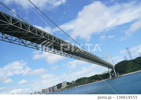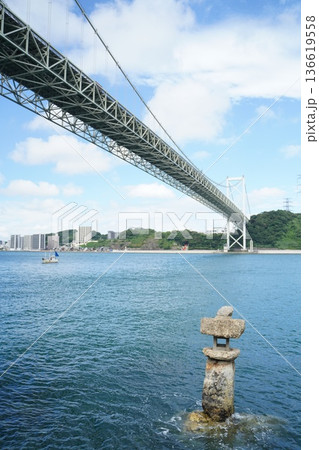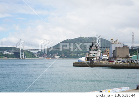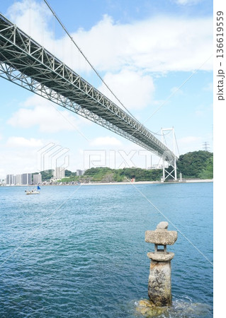北九州市の関門海峡の関門橋と和布刈神社の鳥居